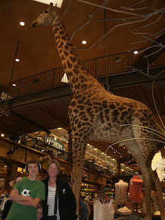 After the movie we went to the Bass Pro Shop. We couldn't resist this picture of Heather and Garrison and Heather's Garrison-assigned giraffe. Garrison assigns animals to people and his mother is a giraffe.