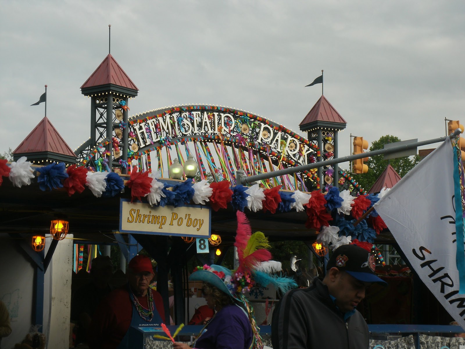 There are a lot of parades during Fiesta Week. We were going to go to the River Parade, but instead we went to one of Susie's friend's River Parade Party. You eat and drink and watch the parade. Or maybe you just visit and have a good time and peek at the parade from time to time. There is also the Battle of Flowers Parade, almost like the Rose Parade, and the night time Flambeau Parade. We watched them on TV too. You get really good seats and you don't have to fight the crowds and traffic or the down pour of rain, which happened with the Flambeau Parade.